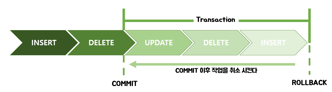 ROLLBACK은 작업 중 문제가 발생되어 트랜잭션의 처리과정에서 발생한 변경사항을 취소하는 명령어야.
