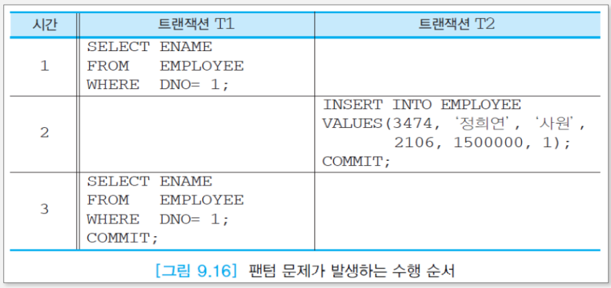 한 트랜잭션 T1에 속한 첫 번째 SELECT문과 두 번째 SELECT문의 수행 결과가 다르게 나타나는 현상.