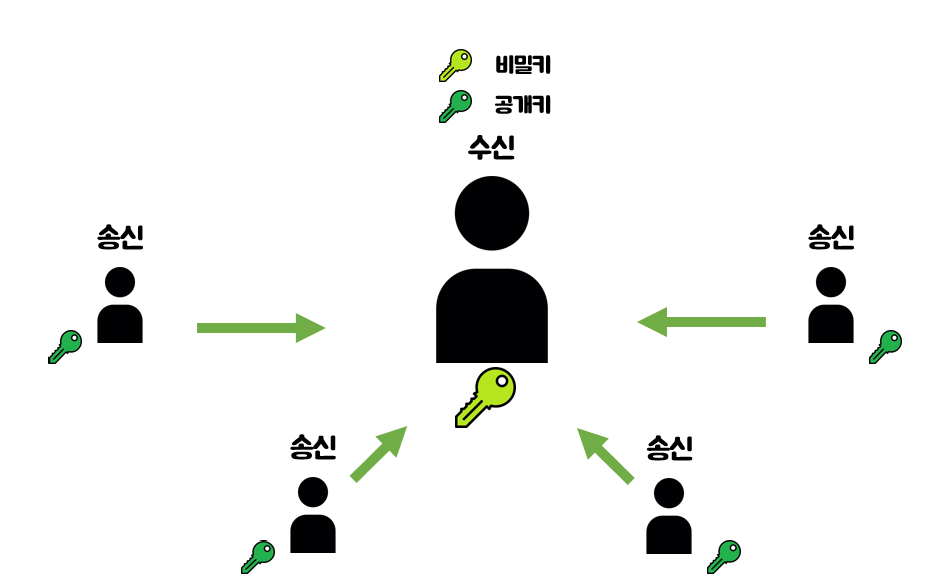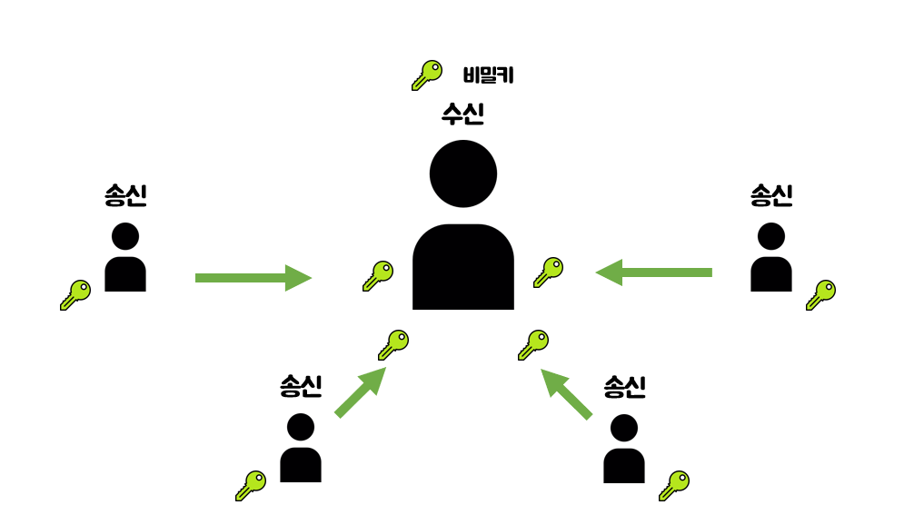 비대칭키 형식은 암호화 할 때 수신자의 공개키를 가져다 사용하므로 각각 비밀키를 다 갖고 있지 않아도 된다는 장점이 있는 것 같아!