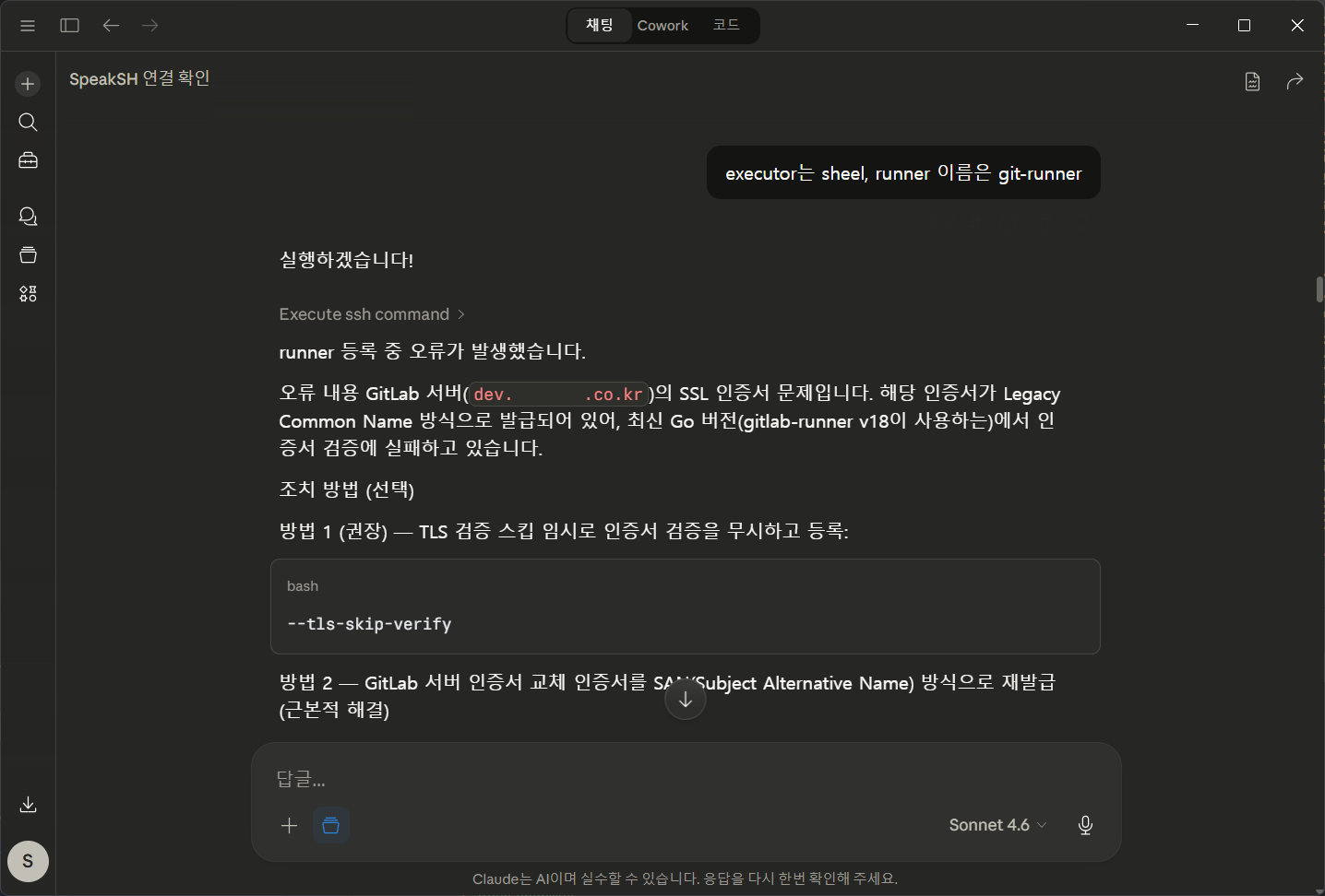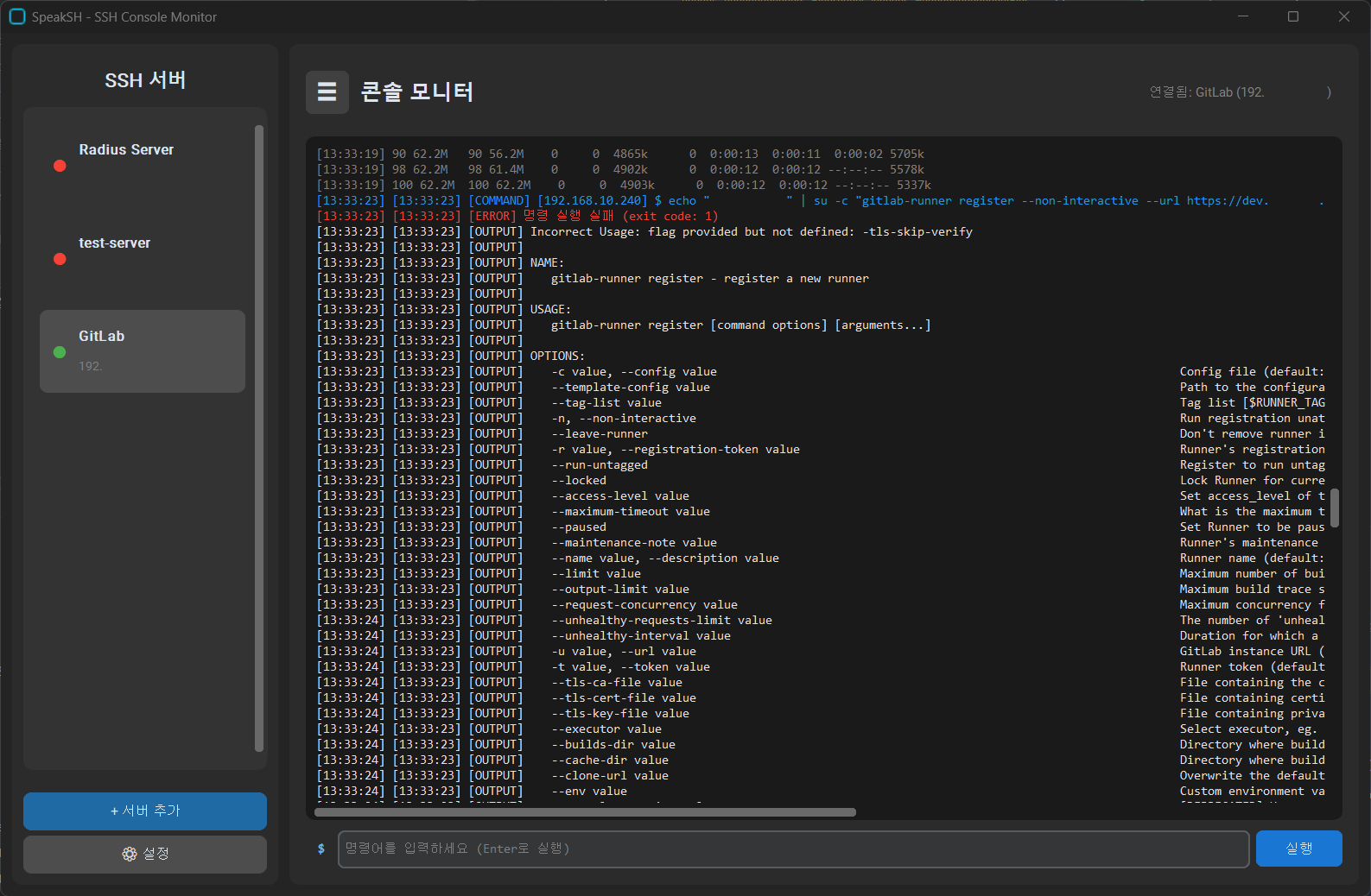 서버에 명령어를 실행하고, 그에 대한 로그를 가지고 대화가 가능했다.